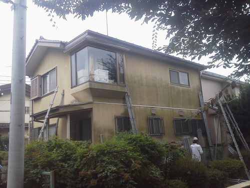 | 依頼の内容 | 外壁塗替え:足場仮設、外壁高圧洗浄、下塗り、上塗り、雨樋塗装、雨戸塗装、鉄部塗装 工事日数=8日間 |