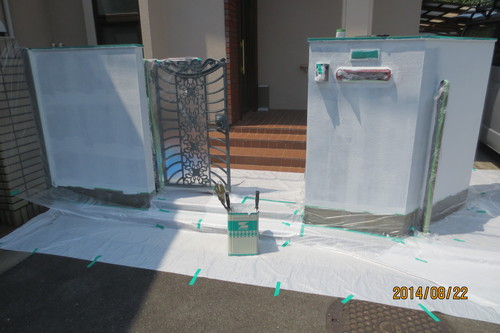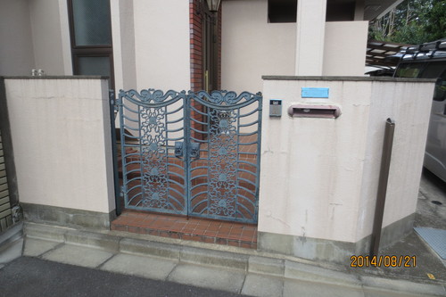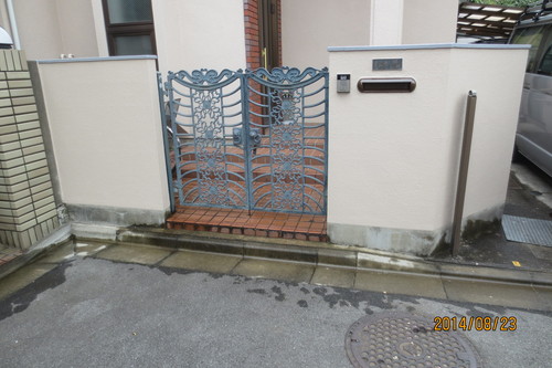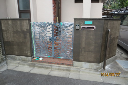 今まで剥がれて汚かった門がきれいに