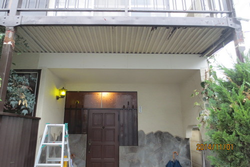 | 依頼の内容 | 玄関庇屋根落下撤去工事:既存玄関庇屋根撤去 撤去部分外壁補修 バルコニー鉄骨補強
