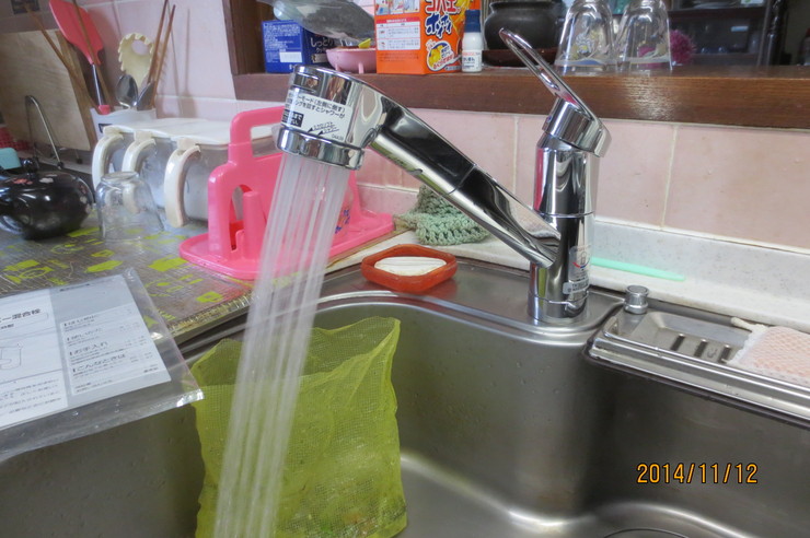 | 依頼の内容 | システムキッチン水栓取替工事:既存シャワー水栓撤去、新規シャワー水栓TOTO製TKGG31EB 定価¥42,300-