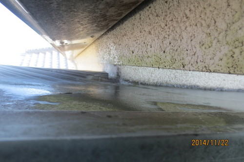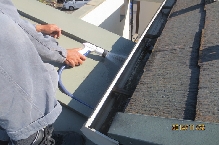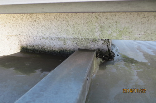図面を見て屋根の作りが怪しい箇所があったので放水調査をしたところすぐに発見。ほかの箇所も怪しいので調査したところ数カ所で雨漏りしていることが発見できました。