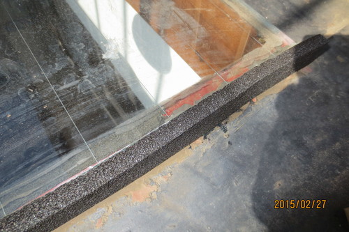 既存トップライトのガラスがコーキングと小さなアルミのアングルが上から被せてあるだけでした。