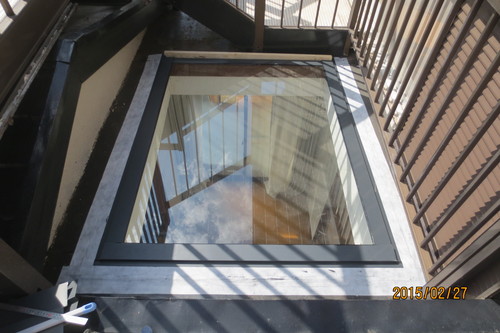 | 依頼の内容 | 屋根天窓雨漏り修理:既存ガラス取り外し、ガラス部分気密防水テープ張り、防水テープ張り、雨押え板金取付 上部に屋根取付