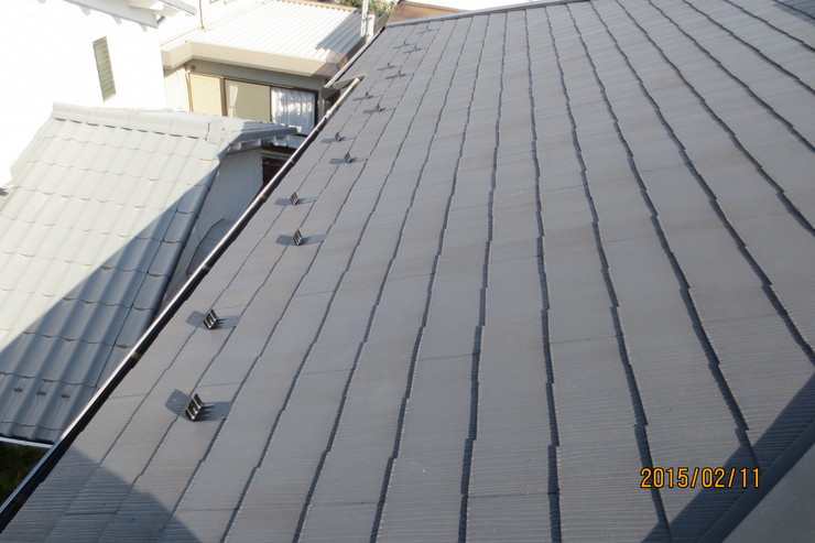 屋根の上での作業の為、安全を考え、2人でお伺いしました。