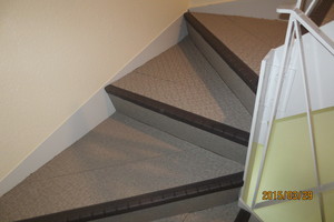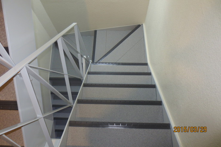 | 依頼の内容 | 階段化粧シート貼り工事:アパート中階段、廊下床タキステップ、タキシート貼り 材料費¥250000- 施工費¥100,000-(端部シーリング含む) 工事日数=2日間 |