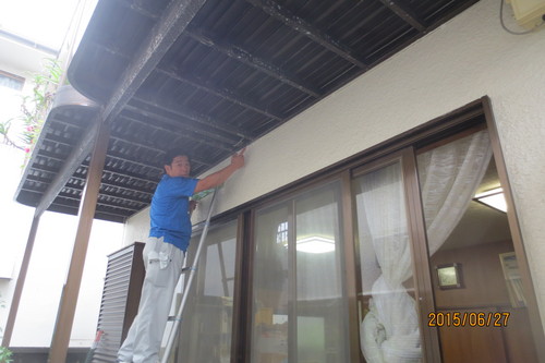 | 依頼の内容 | 雨漏り調査と修理:無料雨漏り調査(水掛調査含む) 雨漏り修理¥50,000-サッシ横シーリング、ベランダ雨樋取付 作業時間=2.5時間 |