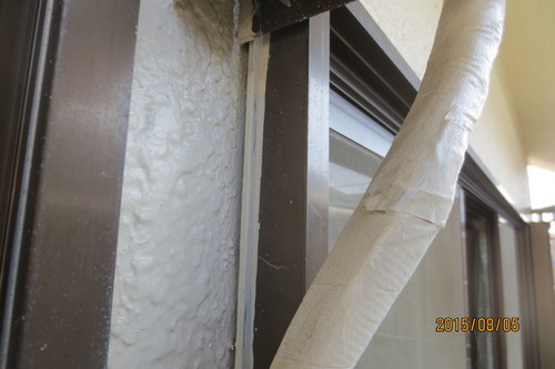 今回は2Fベランダサッシ横よりから雨漏りでした。古い家の窓は防水テープが無いので 外壁塗装をする場合は窓周りにシーリング工事が必要になります。