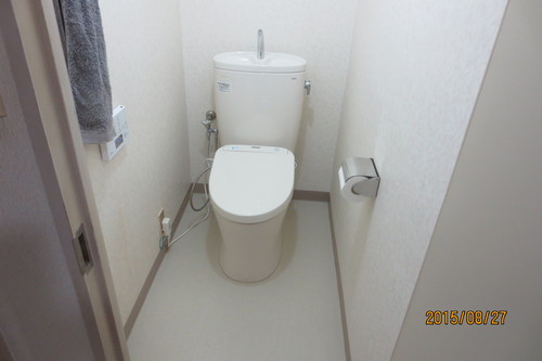 ウォシュレット アプリコットF2 レバー洗浄 定価¥235,900− 取替工事費、処分費含む¥185,000− 床=クッションフロアー貼り替え ¥10,000− 工事時間=2.5時間 |