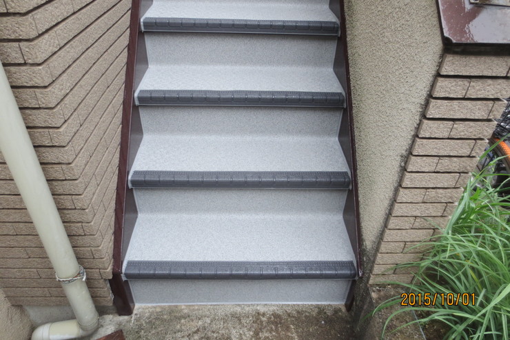 | 依頼の内容 | 階段化粧シート貼り工事:階段化粧シート タキロン製 タキステップ、タキシート使用 材料費14段分+廊下2.5m ¥95,000− 施工費¥80,000− 既存タキシート撤去、処分費¥30,000− 工事日数=2日間 |