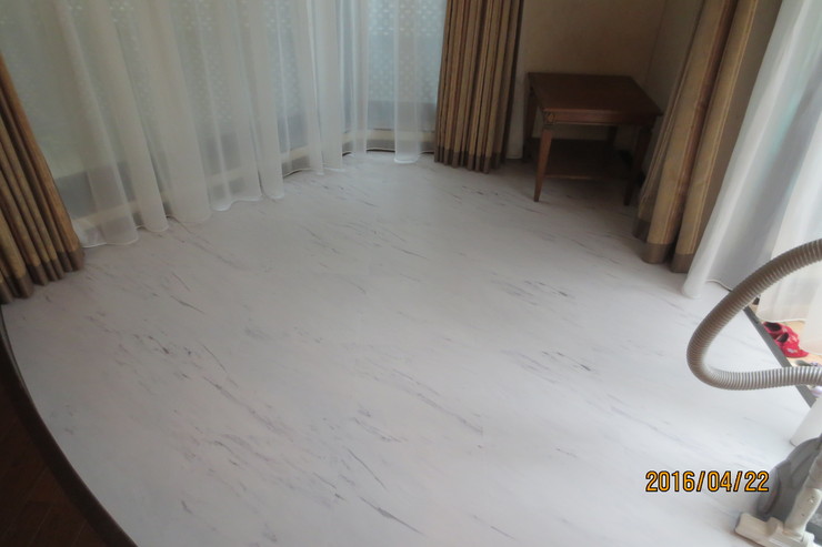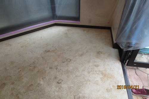 | 依頼の内容 | ジュウタン貼り替え:既存床絨毯撤去、処分 床下地ベニヤ貼り サンゲツフロアータイル貼り(耐水性ウレタンボンド使用)