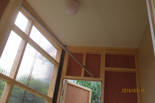 建物の外壁にできるだけ近づけるように下見板ではなく、9mmのベニヤ板に溝を掘りました。下見板の3分の一ほどの価格で出来ました。