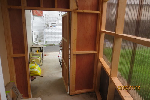 | 依頼の内容 | 洗濯機囲い工事:骨組み 2×4 外壁ベニヤ ポリカ波板、ドアノブ